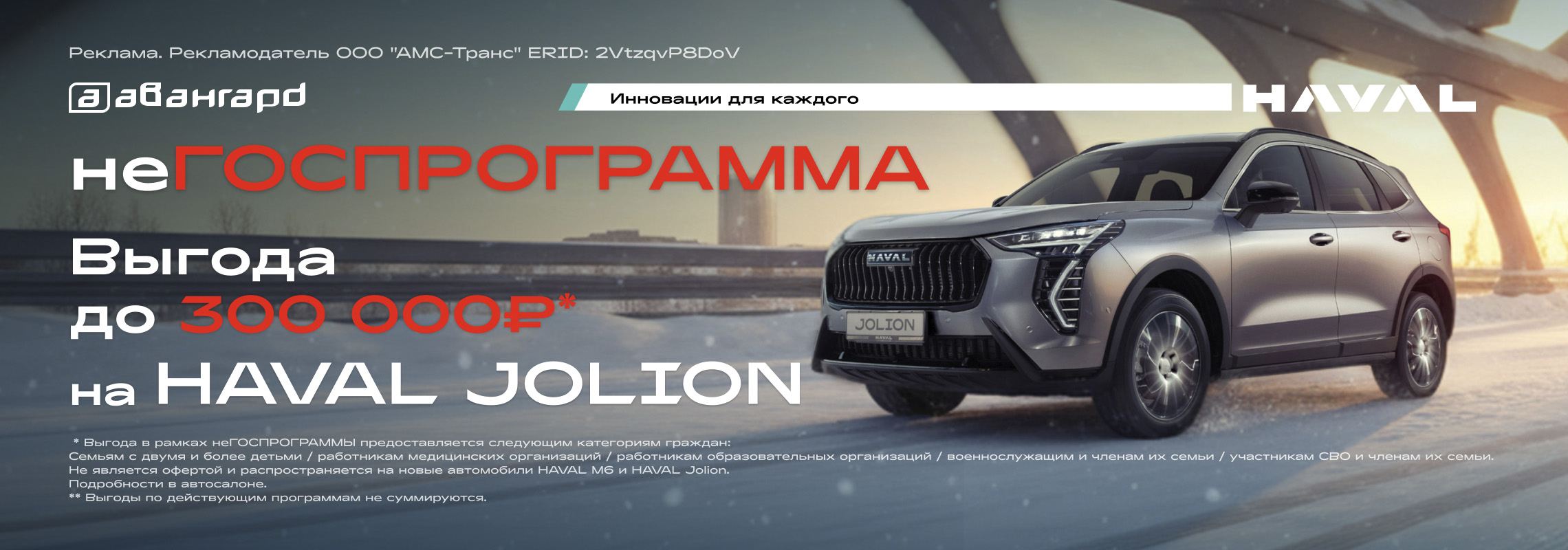 Программа распространяется на автомобили HAVAL Jolion. Выгода до 300 000₽*